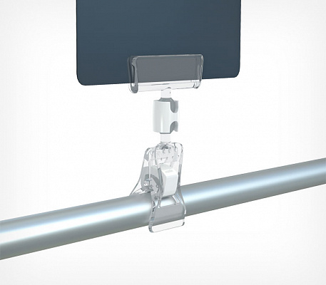Универсальный ценникодержатель прищепка. Надевается на торец полки, край коробки, корзины, блюда толщиной до 10 мм.
