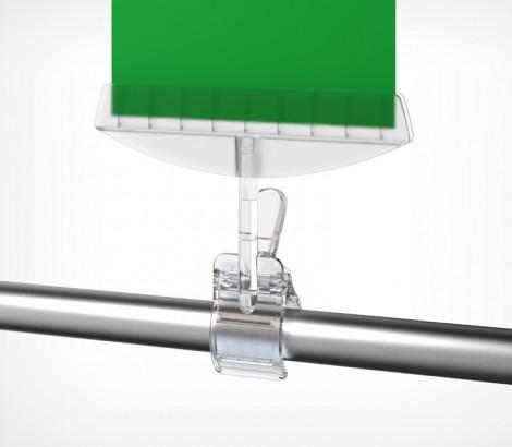 Держатель акрилового кармана или плаката из картона, с зажимом-прищепкой для крепления на трубе ( макс Ø 40 мм), товаре, краю полки (макс.толщина 35 мм).