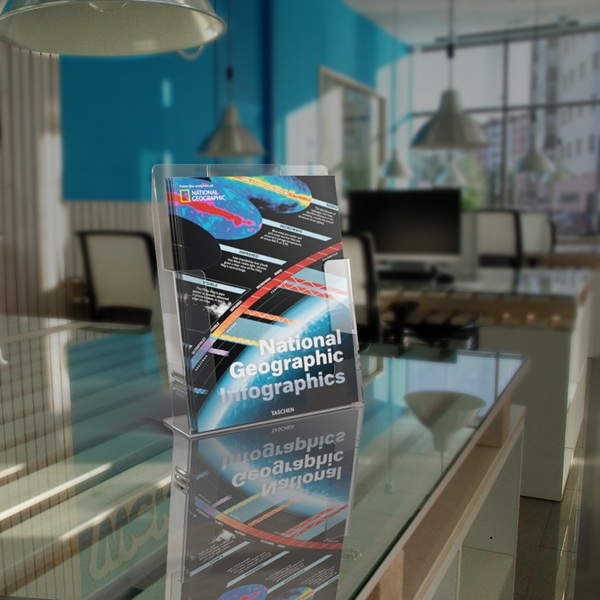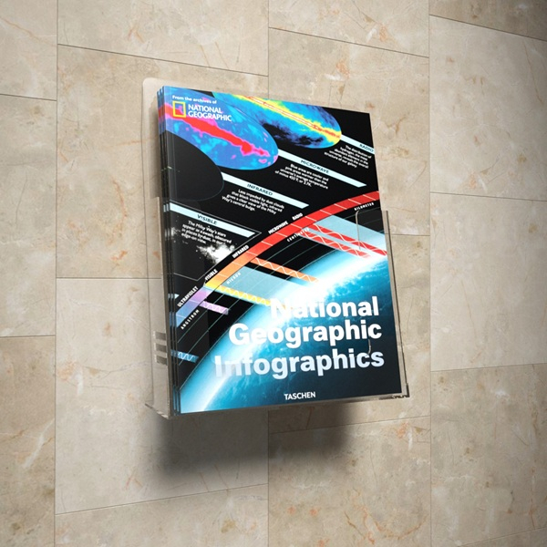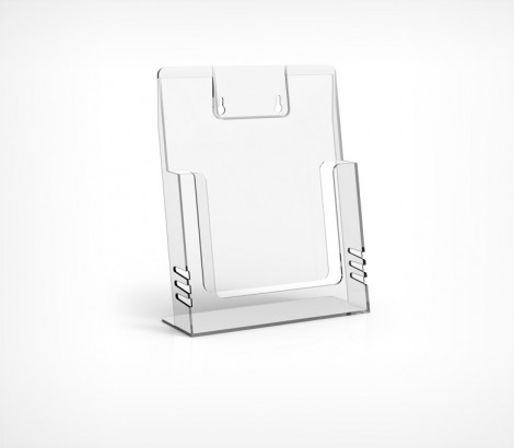 Универсальный держатель буклетов. Может располагаться на столе или крепится к стене. Изготовлен методом литья под давлением.