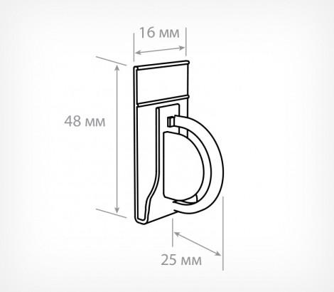 Клипса крепится на полочный ценникодержатель (высотой 39 мм) . Применяется для создания рекламных вывесок, которые размещаются рядом с товаром на полке и содержат информацию о товаре или акции. В качестве стоппера используются ламинированный картон или тонкий пластик до 0,8 мм. В держателе предусмотрен специальный штырек, который, фиксирует стоппер в держателе.