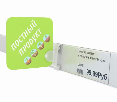 Клипса для крепления рекламных стопперов на полочный ценникодержатель высотой 26, 30 и 39 мм и на край некоторых видов полок. Клипса используется с стопперами из ламинированного картона или тонкого пластика до 0,8 мм. Вставка хорошо держится в клипсе благодаря штырьку на стоппере и обеспечивает надежную фиксацию.