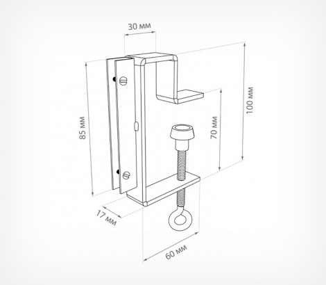 Струбцина CLAMP HOLDER-L90 с вертикальным держателем вывесок и отгибом
