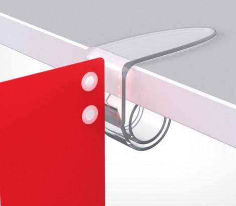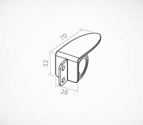 Держатель вертикальной вывески. Вертикальный вылет размером 15 х 28 мм имеет 2 отверстия диаметром 5 мм для крепления вывесок на пластиковые заклепки