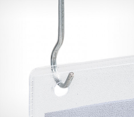 Удлинённый крючок DS-HOOK предназначен для подвешивания постеров и вывесок. Изготовлен из прочной стальной проволоки толщиной 2 мм