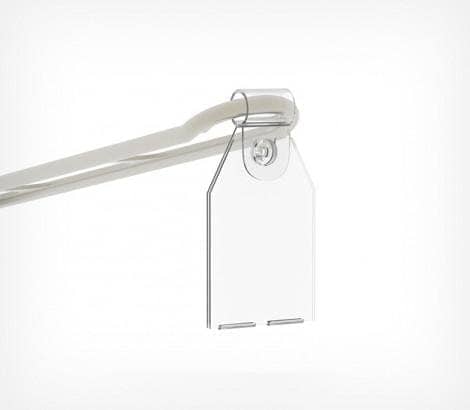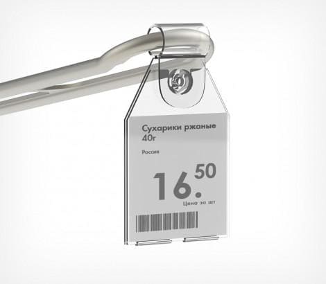 Откидной держатель ценника для двойных металлических или пластиковых крючков, Защелкивается на передний край крючка. Идеально подходит для двойных крючков без T-держателя. Размер бумажной вставки 27 х 30 мм
