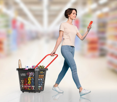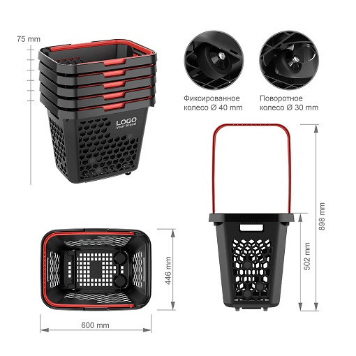 Покупательская корзина-тележка TECHNO XL — это прочная, удобная и бесшумная модель. Она позволяет совершать покупки с комфортом, так как её можно легко перемещать по торговому залу даже в наполненном состоянии Особенности корзины-тележки TECHNO XL: эргономичная ручка с фиксатором для удержания её на уровне руки покупателя; усиленная конструкция дна гарантирует длительную эксплуатацию; варианты цвета ручек: красный, салатовый, синий, оранжевый, чёрный; два способа брендирования: шёлкография или стикер; легко штабелируются одна в другую; габаритные размеры (длина * ширина * высота): 600 * 446 * 502 мм.