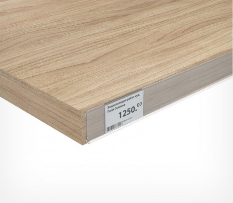 Полочный ценникодержатель DBR высотой 26 мм используется на узких полках или промо-оборудовании в магазинах косметики и парфюмерии, аптеках, винных и книжных магазинах. Он лаконично смотрится на полках, не отвлекая внимания от самого товара. Монтируется на двухсторонний скотч на задней стенке ценникодержателя.