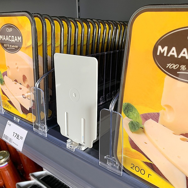 Расширитель позволяет использовать пружинный толкатель с товарами в упаковке большого размера. Надевается на заднюю опору толкателя шириной 40 мм. Имеет два варианта положения к поверхности полки: под углом 90° и 75°. Положение с наклоном используется с товарами в неустойчивых упаковках. Обладает высокой прочностью.
