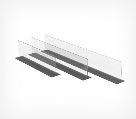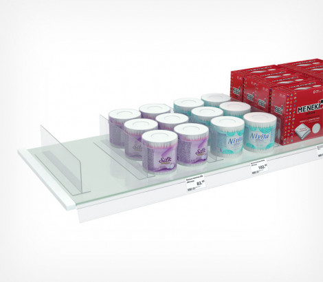 Разделитель DIVТ-80 Т-обр. высота 80 мм — универсальный разделитель товаров для организации выкладки на стеклянных, деревянных или металлических полках магазинных стеллажей. Подходит для полок глубиной 300 мм; подходит для использования с большинством товаров из ассортимента супермаркетов, аптек, магазинов формата дрогери, косметики и канцелярии;не требует дополнительных крепежных аксессуаров для установки; ширина основания — 45 мм; цвет — прозрачный.