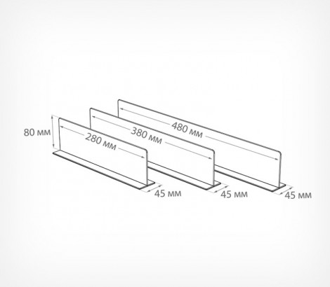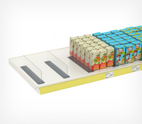 Универсальный разделитель высотой 80 мм с нижним Т-профилем. Для установки на полку как без крепежных аксессуаров, так и на магнитном креплении. Конструкция обеспечивает простоту применения - разделитель прижимается к полке товаром.