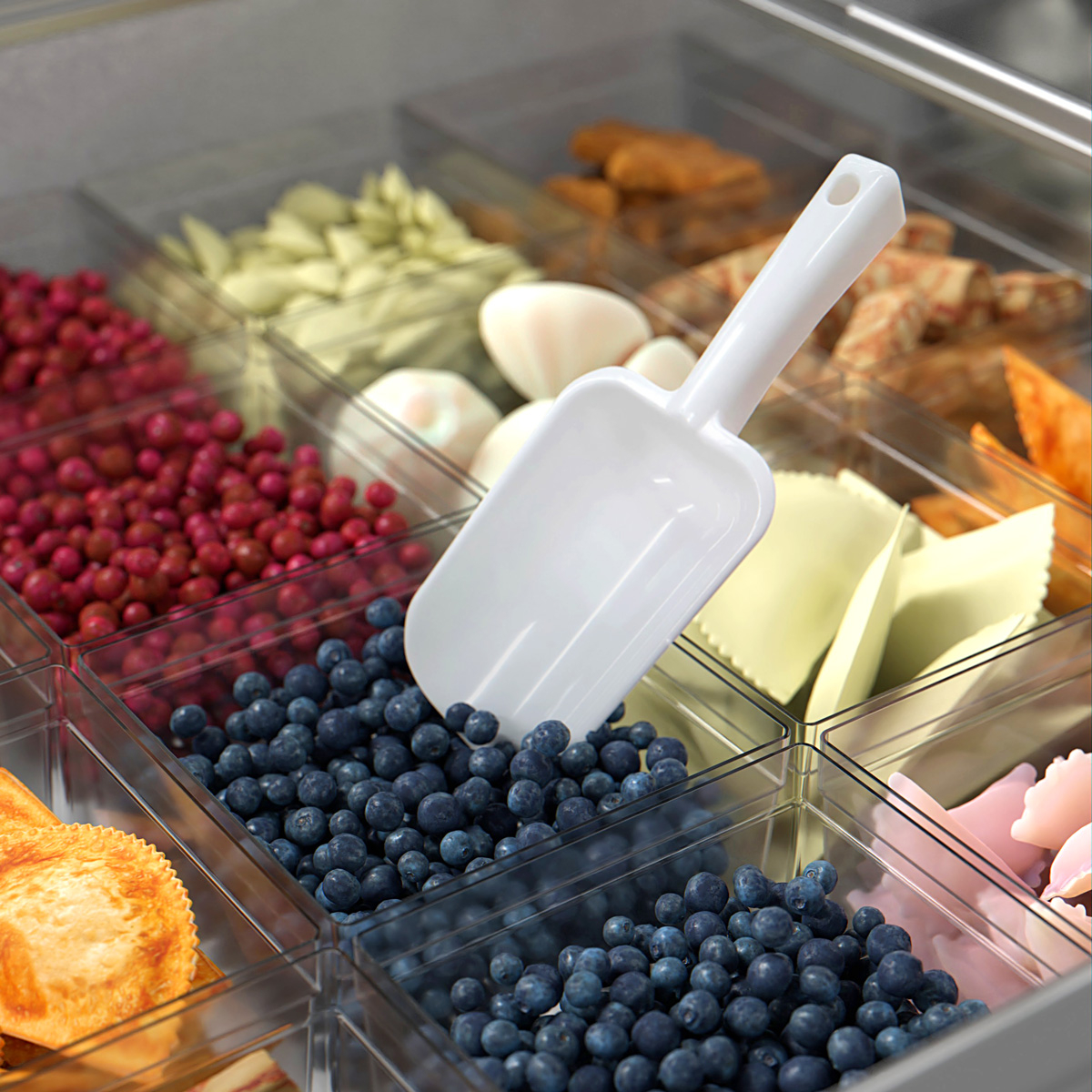 Эргономичный и легкий совок подходит для сыпучих продуктов (круп, муки, сахара и т.п), а также ягод, орехов, конфет, мармелада, замороженных продуктов, кормов для животных.