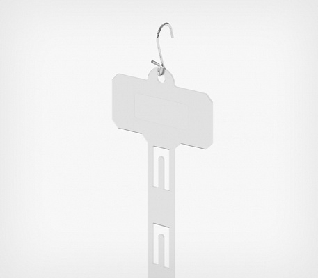 12 пластиковых крючков-фиксаторов расположенных с шагом 47 мм обеспечивают надежное и удобное размещение товаров на ленте. Верхняя часть ленты оснащена топпером для крепления ценников или рекламных наклеек. Дополнительно, в верхней части ленты предусмотрено отверстие для крепления с использованием специального металлического крючка для страйп-лент или хомута.
