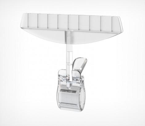 Держатель акрилового кармана или плаката из картона, с зажимом-прищепкой для крепления на трубе ( макс Ø 40 мм), товаре, краю полки (макс.толщина 35 мм).