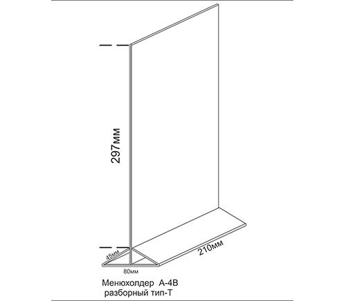 МЕНЮХОЛДЕР ФОРМАТА А-4, С НИЖНЕЙ ЧАСТЬЮ РАЗЛИЧНЫХ ЦВЕТОВ, КЛАСИЧЕСКОГО ВИДА. СОСТОИТ ИЗ ДВУХ ЧАСТЕЙ, ПРОЗРАЧНОГО Т-ОБРАЗНОГО ПЛАНШЕТА И НИЖНЕГО ДЕРЖАТЕЛЯ, ТРЕУГОЛЬНОЙ ФОРМЫ. ПОДХОДЯЩИЕ ИЗДЕЛИЕ, ПРИ НЕОБХОДИМОСТИ ПО ОСОБЕННОМУ ВЫДЕЛИТЬ ИНФОРМАЦИЮ.