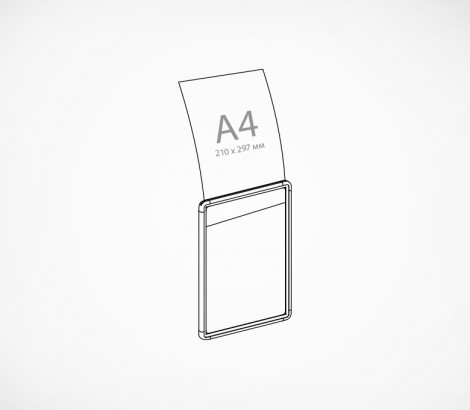 Пластиковая рамка на ножках для размещения информации формата А-4. Информация легко меняется, возможность разместить информацию вертикально и горизонтально.