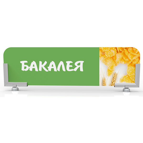 ALU -BOARD-MGT изделие для крепления рекламных поверхностей и ценников, на базе профиля Frame Rail. Позволяет крепить различные вывески, таблички толщиной до 4мм на верхних торцах стеллажей и холодильников.