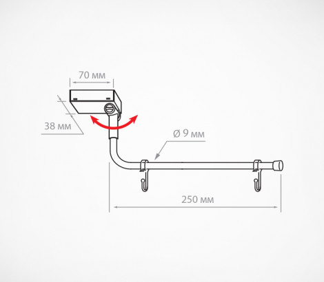 Держатель вывески на сильном магните с изогнутой трубкой Ø9 мм. Размер магнитного основания 70x38 мм, длина трубки – 250 мм. Угол наклона трубки регулируется. На трубке - 2 подвижных пластиковых крючка.