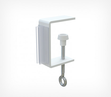 Струбцина CLAMP SGT-25 с держателем вывесок "Акула" — это металлическая струбцина шириной 25 мм с фиксированным держателем SGT, окрашенная в белый цвет. Оснащена держателем типа «акула», изготовленным из прозрачного и ударопрочного пластика. Назначение: используется для вертикального закрепления на стеллажах или других конструкциях вывесок и информационных табличек толщиной от 0,5 до 3 мм. Максимальная толщина полки — 40 мм.