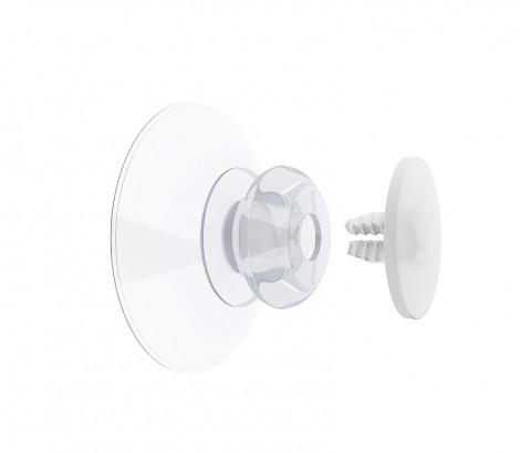Силиконовая присоска позволяет закрепить на стекле вывески и рекламные материалы через небольшие отверстия в носителях информации. Используется для материалов толщиной до 2 мм. Ø шляпки пистона 15 мм. Длина пистона 6 мм.