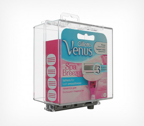 Противокражный бокс удобен для защиты упаковок с кремом или со сменными лезвиями для бритв, банок с икрой и любых других товаров небольших размеров. Сейфер оснащен петлей с евроотверстием для подвешивания на крючки.