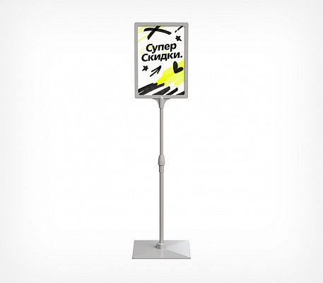 Подставка пластиковая «Квадрат» для размещения напольных и настольных информационных стоек на телескопических трубках, рамок форматов А-4 и А5 в местах продаж. Применяется с трубками Ø 12 мм, длиной до 550 мм.