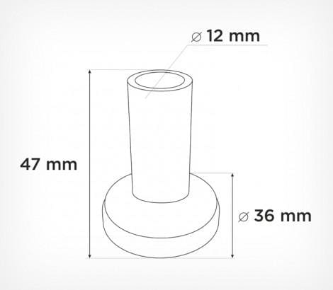 Диаметр основания изделия составляет 36 мм, высота - 47 мм, высота пенька 35 мм, отверстие под трубку диаметром 12 мм
