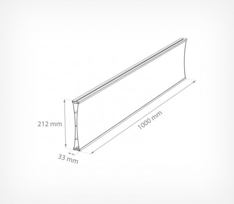 На прайсборд возможно размещать ценники с обоих сторон, что делает прайсборд оптимальным решением для «островных» выкладок с многочисленным количеством товаров на одной точке (горки «овощи-фрукты», паллетные выкладки, холодильные лари). Выгодным преимуществом прайсборда является также легкая и быстрая смена информационного носителя. Простота сборки и монтажа позволяет при необходимости легко менять место установки прайсборда. Стандартные цвета прайсборда: серый, красный и зеленый. Возможно исполнение в другом цвете на заказ. Размер: 1000х212х33 мм.