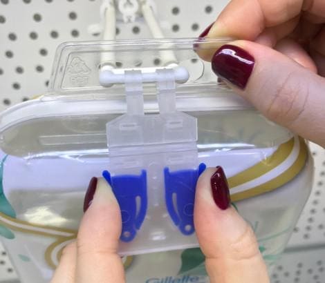 Противокражное устройство защищает товары, размещенные на двойных крючках. HOOK-GUARD оснащен по бокам кнопками,  которые не дают за один раз снять с крючка больше одной упаковки. При снятии покупатель использует обе руки, что служит дополнительной защитой, не давая возможности ворам легко и быстро забрать товар. HOOK-GUARD не потеряется, он надежно крепится к крючку. HOOK-GUARD не является ценникодержателем.
