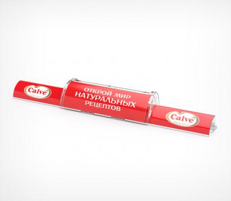 Используется передний профиль с ценникодержателем. Высота рекламной вставки - 30 мм. Имеет Т-профиль для крепления разделителей и толкателей. Крепится на полку на двухсторонний скотч.