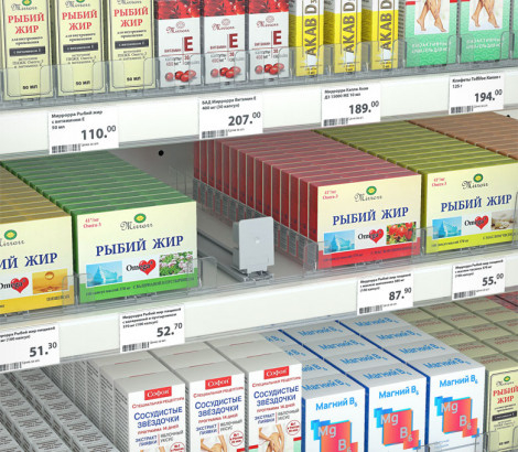 Толкатель FORTA NORMA-0 — используется в магазинах и супермаркетах для презентации товаров в небольшой упаковке, например, сигаретных пачек или лекарств, изготовлен из прочного пластика, фиксирует последнюю упаковку у края полки. Рекомендуется использовать с разделителями, имеющими передний ограничитель