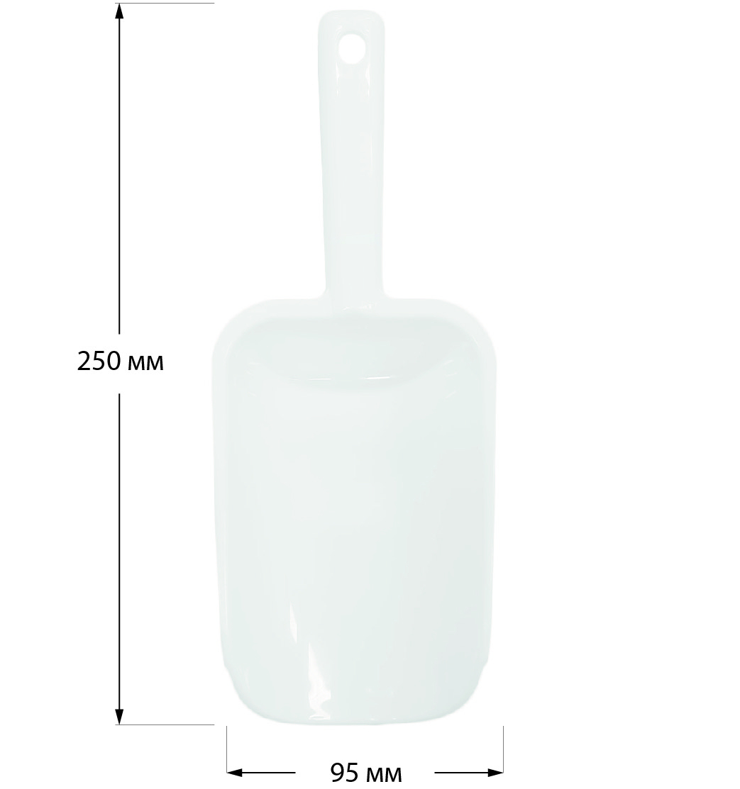 Эргономичный и легкий совок подходит для сыпучих продуктов (круп, муки, сахара и т.п), а также ягод, орехов, конфет, мармелада, замороженных продуктов, кормов для животных.