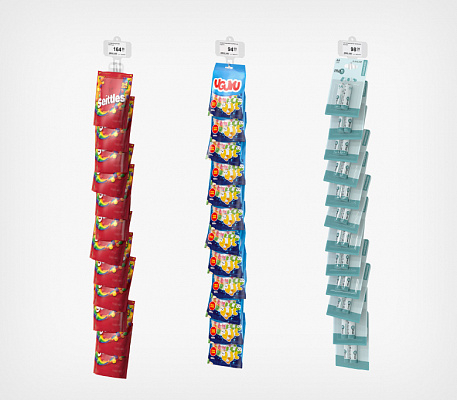 Идеально подходит для размещения продукции с высоким импульсным спросом, такой как сухарики, чипсы, мармеладки, жевательные конфеты и батарейки.
