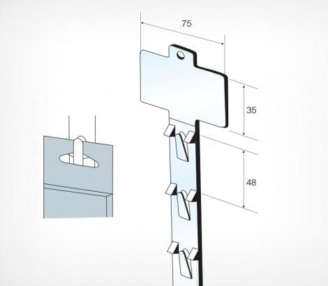 Полупрозрачная пластиковая подвесная страйп-лента повышенной прочности. Изготовлена методом литья под давлением, крючки с запорными замками обеспечивает надежное крепление товара и защиту от падения с ленты. 12 пластиковых крючков-зажимов, расположенные с шагом 48мм, позволяют надежно подвешивать товар. Небольшой топпер, расположенный в верхней части ленты, предназначен для крепления ценника или рекламной наклейки. Количество крючков - 12.