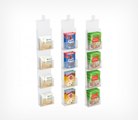 Страйпхолдер размещает мелкие товары в прикассовых зонах и на любом оборудовании в торговом зале. Используется для кросспродаж. Данная модель с четырьмя карманами подходит для размещения товаров в небольших упаковках, таких как снеки, сладости, специи, косметические маски, салфетки или корма для домашних животных.